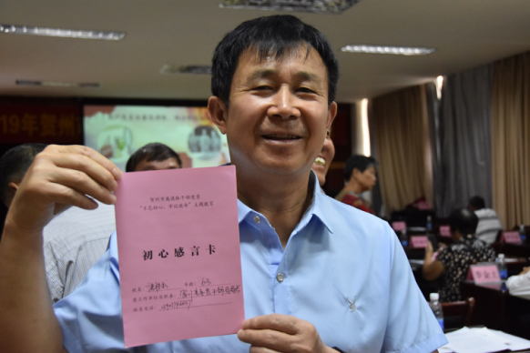 老党员们重温入党誓词 培训班围绕“不忘初心、牢记使命”主题教育,为老干部们精心设计了丰富生动的学习课程和内容,通过理论知识学习、现场参观教学、分组座谈交流、集体重温入党誓词、歌唱祖国、写初心感言卡的形式,引导广大离退休干部在习近平新时代中国特色社会主义思想指引下,进一步加强思想政治建设,为党和人民的事业增添正能量。
