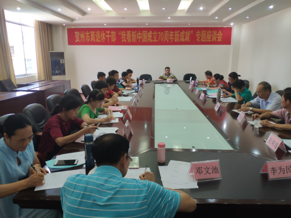 7月18日,贺州市委老干部局组织离退休干部开展“我看新中国成立70周年新成就”座谈会。