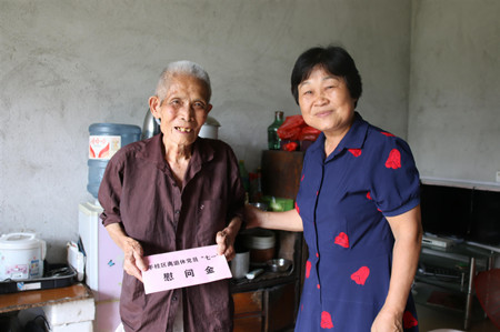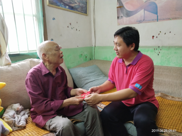 凭祥市委老干部局党支部结合“不忘初心、牢记使命”主题教育,开展“七一”走访慰问活动,为老党员送去党组织的关怀与问候。活动中,慰问组与每位老党员亲切交谈,问候老党员近期的身体情况和生活状况,为他们送上慰问品,听取他们的意见建议,让他们感受到了党的温暖。在98岁老党员郭英杰家中慰问结束后,郭老执意要送送慰问组工作人员,嘴里念叨着“感谢党组织!感谢老干局!”。此次慰问活动让老党员倍感温暖,纷纷表示,将时刻记住党员的身份,不忘初心,牢记使命,作出力所能及的贡献。(凭祥市委老干部局)