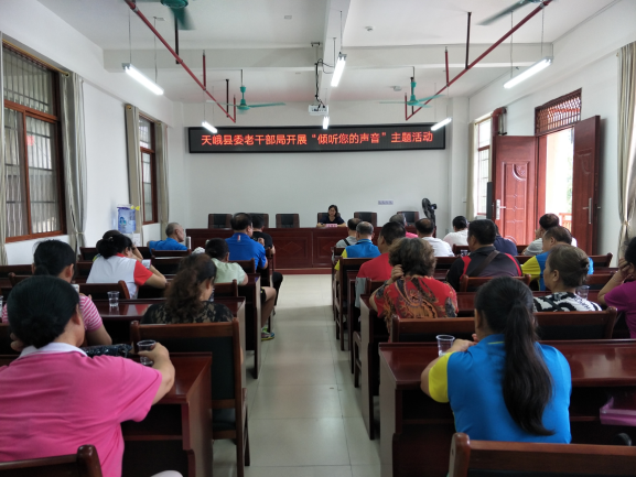7月5日,天峨县委老干部局在老干部活动中心开展“倾听您的声音”主题活动,听取老同志对活动中心管理方面需要加强的地方,以及老同志在参与各种活动中遇到的困难和需要解决的问题。县委组织部副部长、老干部局局长孟爱堂出席活动。