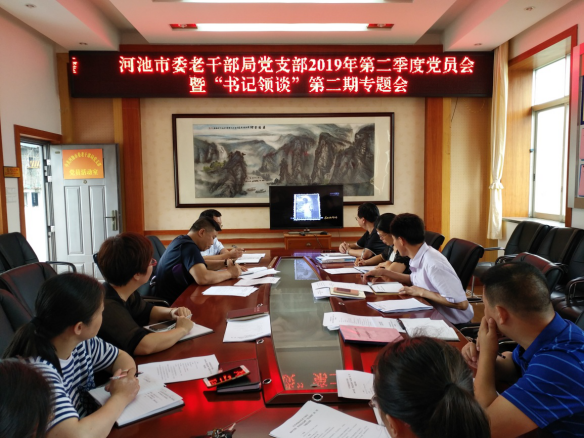 近日,河池市委老干部局党支部召开2019年第二季度党员会暨“书记领谈”第二期专题会,重点学习习近平总书记在“不忘初心,牢记使命”主题教育工作会议上的讲话精神,进一步加强对支部党员的教育管理,为下一步开展好“不忘初心,牢记使命”主题教育活动做充足准备。局机关全体在职党员、入党积极分子、市老干部休养所在职党员参加会议。副局长、局机关党支部书记韦朝良主持会议。