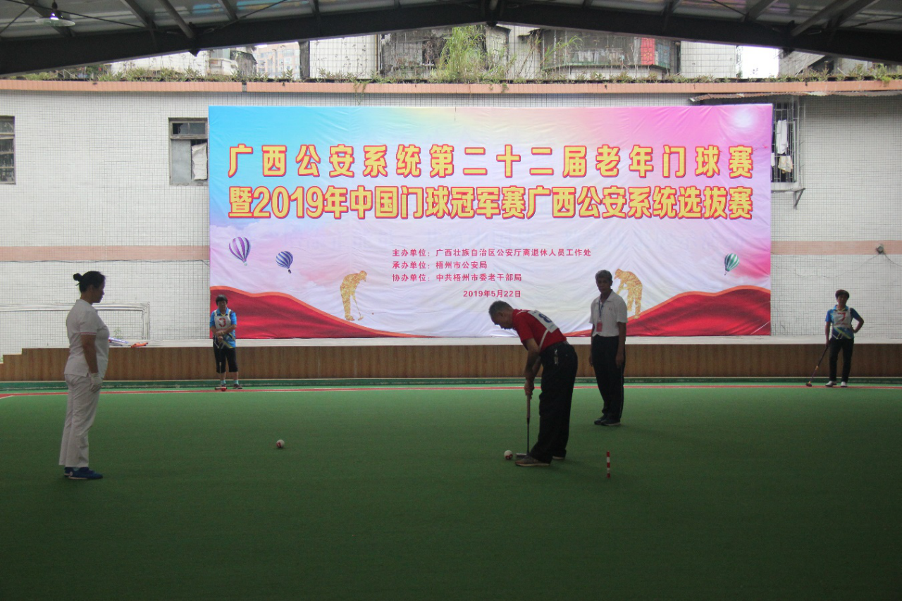 5月22日至23日,广西公安系统第二十二届老年门球赛暨2019年中国门球冠军赛广西公安系统选拔赛在梧州市举行。比赛由自治区公安厅离退休人员工作处主办,梧州市公安局承办,梧州市委老干部局协办。来自全区公安系统的9支老年代表队参加了比赛。