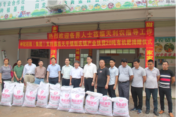 5月16日,市委老干部局与市关工委、神冠集团公司和市老科协等单位到藤县天平镇新马村给农村青年捐赠20吨有机肥,用于支持农村青年发展黄金百香果、软技油茶、脐橙等产业,助力打赢脱贫攻坚战。市关工委执行主任黄积卓,市委组织部副部长、老干部局局长杨安,神冠公司总裁助理朱泽刚等一同参加了捐赠仪式。