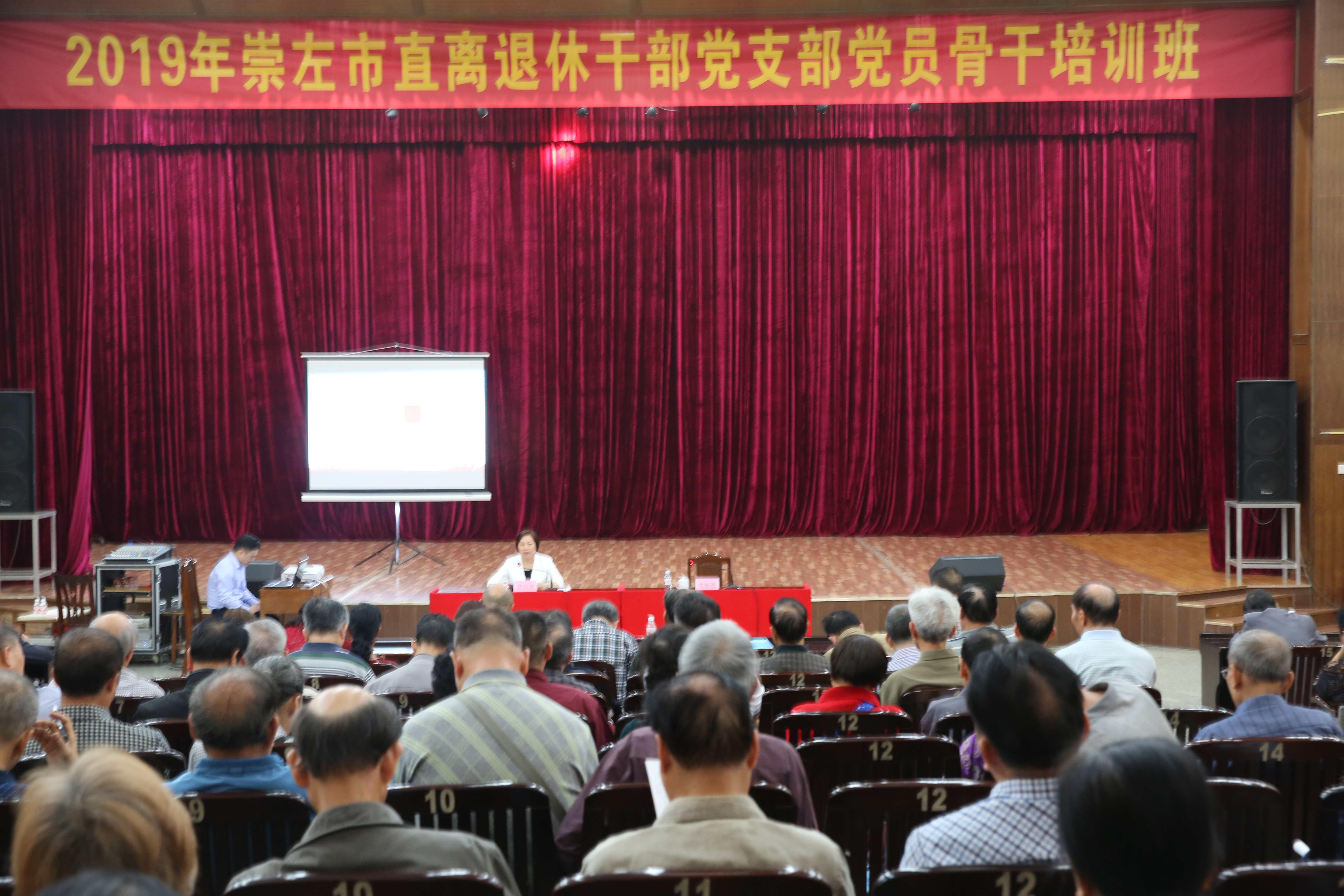 4月17—18日,崇左市举办市直离退休干部党支部党员骨干培训班,深入学习习近平总书记关于加强党的基层组织建设、党风廉政建设和反腐败斗争、实施乡村振兴战略等方面的重要论述。市直机关91个离退休干部党支部233名党员骨干参加了学习培训。