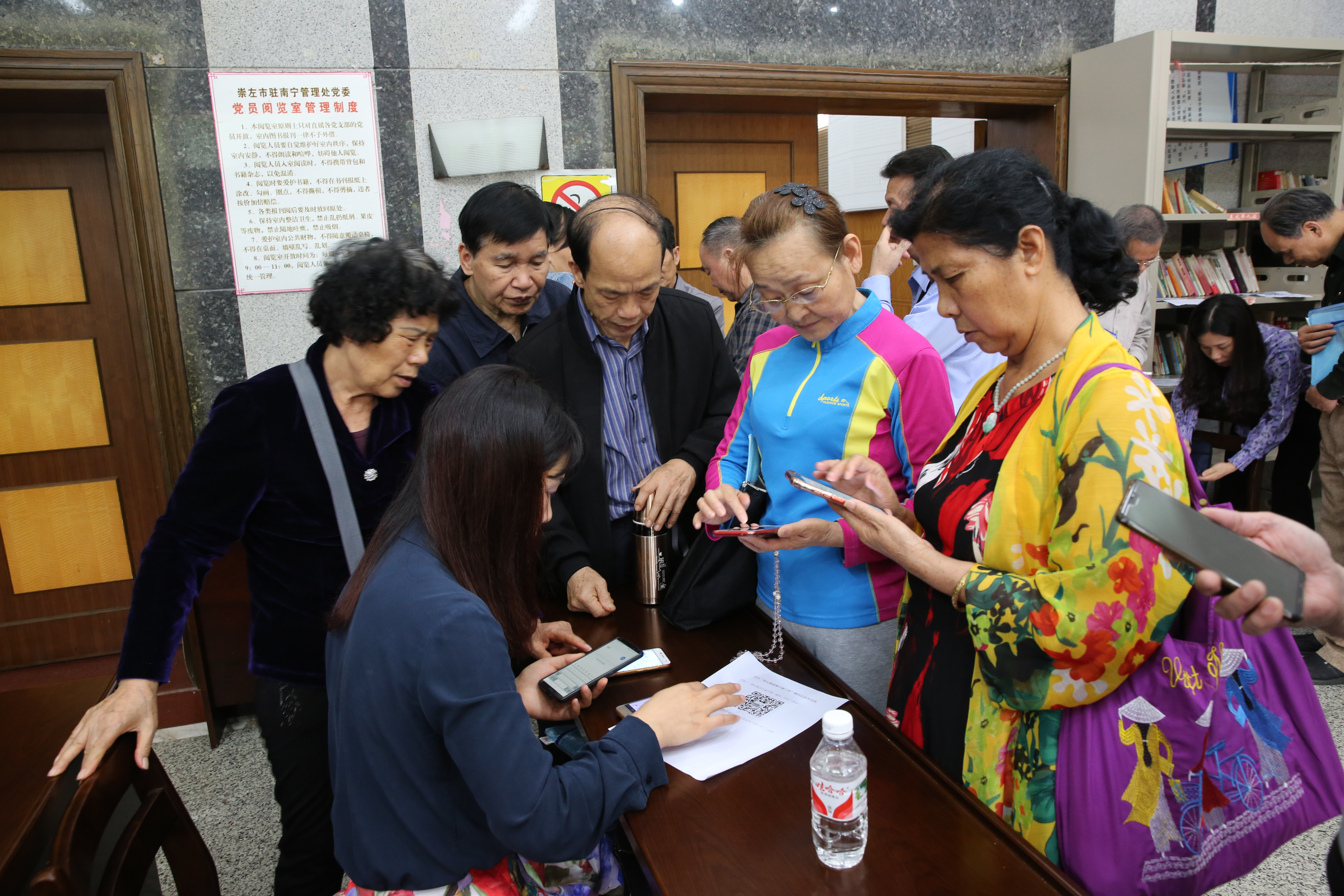 市委老干部局工作人员现场指导培训班学员安装使用“学习强国”。