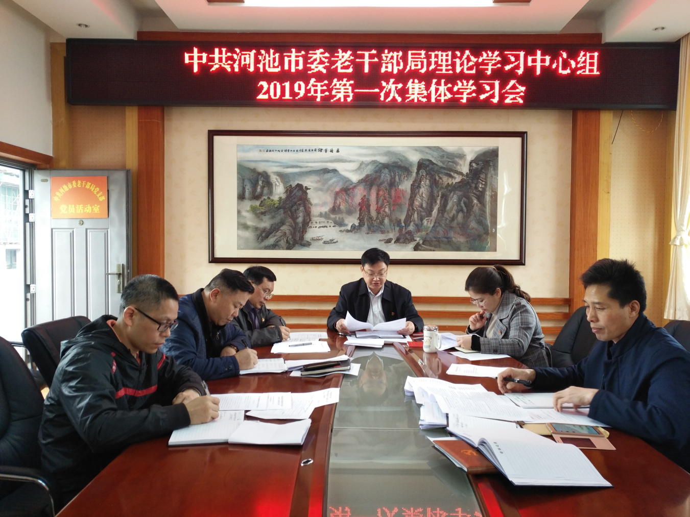 为深入贯彻落实全国两会精神,全面学习、深刻理解习近平新时代中国特色社会主义思想,3月27日,河池市委组织部副部长、老干部局局长罗平主持召开市委老干部局理论学习中心组2019年第一次集体学习会。局领导班子成员、各科室(所)负责人参加会议。
