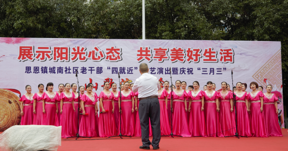 3月16日下午,环江县委老干部局联合思恩镇城南社区举办老干部“四就近”文艺演出暨庆祝壮族“三月三”山歌演唱会。
