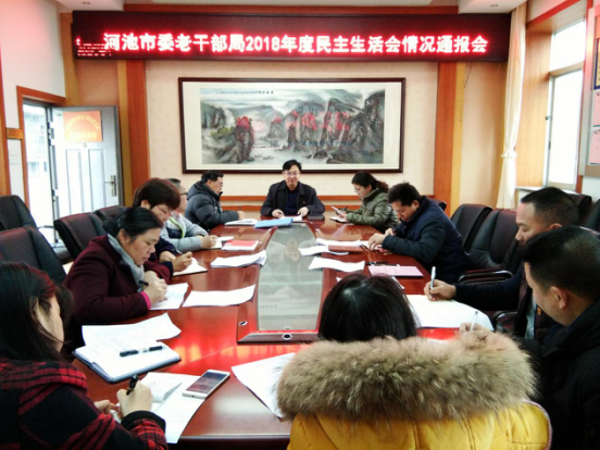 2月25日上午,河池市委老干部局召开干部职工大会,通报局班子2018年度民生生活会情况。市委组织部副部长、老干部局局长罗平主持会议并作情况通报。