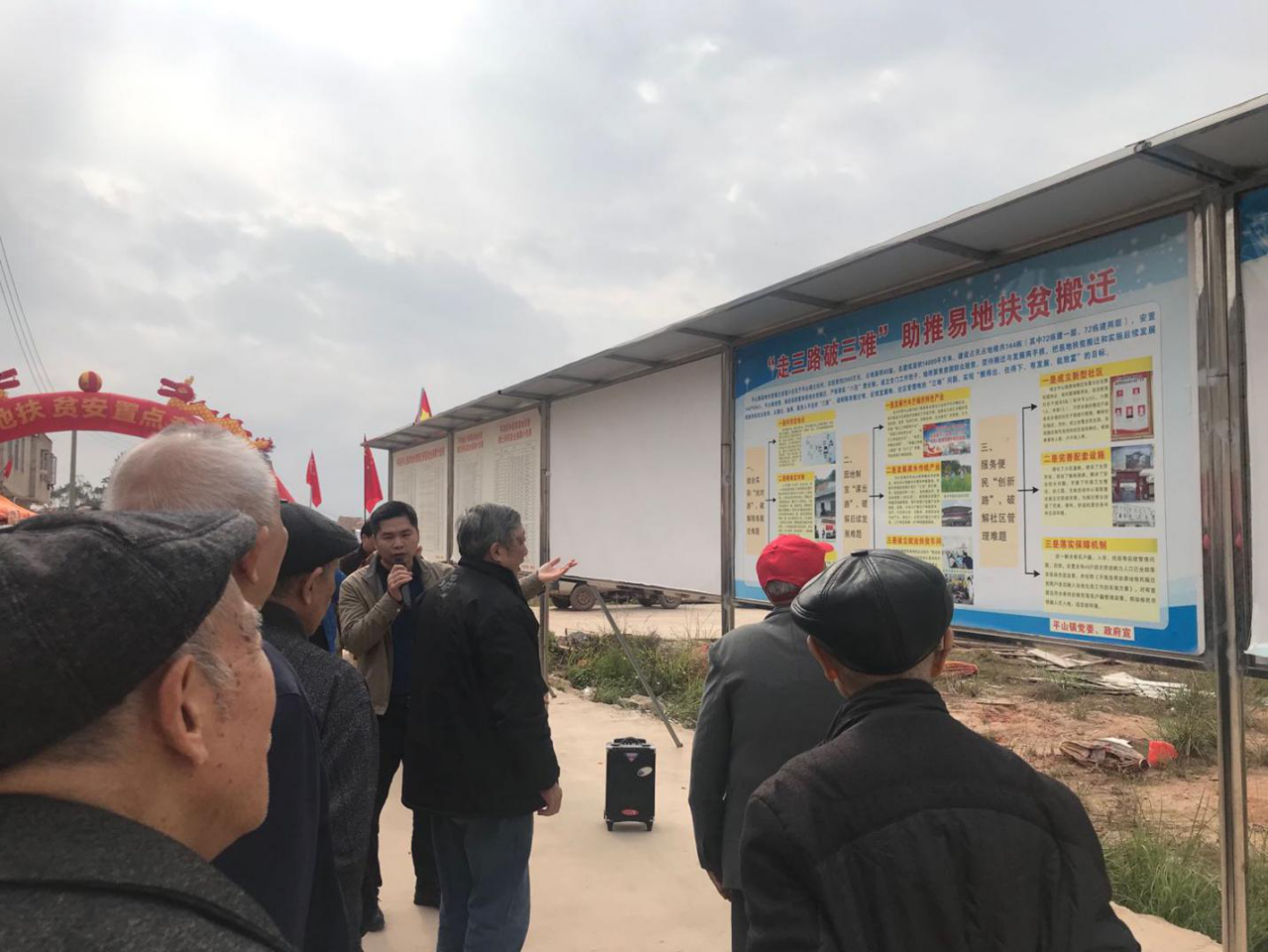 在平山镇易地扶贫安置点,平山镇人大代表谭旭龙向老同志们详细介绍此次易地扶贫的流程和“走三路破三难”的特色理念,从搬迁、施贷、服务走好“三路”,到破解精准搬迁难、后续发展难、社区管理难的“三难”问题。在听取介绍后,老同志们感叹扶贫事业发展和成功的不易,对易地搬迁和实施后续发展措施有机结合纷纷点赞。
