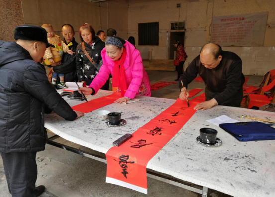 为营造欢乐祥和的佳节气氛,近日,桂林市临桂区老年大学组织书法班教师及学员来到社区义务为民写春联,给市民送去新春祝福。