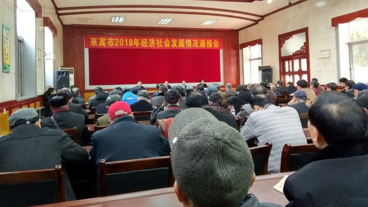 1月23日,来宾市召开2018年经济社会发展情况通报会,300多名驻柳离退休干部参加会议。市委书记农生文、市长雷应敏亲切看望慰问老领导、老干部,向大家致以新春的祝福,感谢老同志们为来宾经济社会发展作出的贡献,并通报来宾市2018年经济社会发展情况和2019年工作计划。