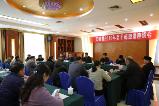 1月22日,天峨县召开2019年老干部迎春座谈会。县委书记陆祥红、县长黄正华、县人大常委会主任朱维国、县政协主席李祖斌出席会议与老干部代表欢聚一堂,共庆新春佳节,共商发展大计。县委常委、组织部长韦明德主持会议。