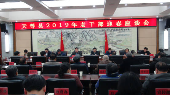 1月24日上午,天等县召开2019年老干部迎春座谈会。