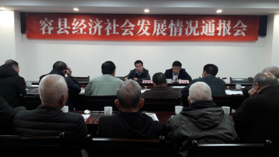1月18日上午,容县召开经济社会发展情况通报会,县委常委、常务副县长杨家贵出席会议并讲话,县委常委、组织部部长党永新主持会议,离休干部、四家班子退休老领导共16人参加了会议。