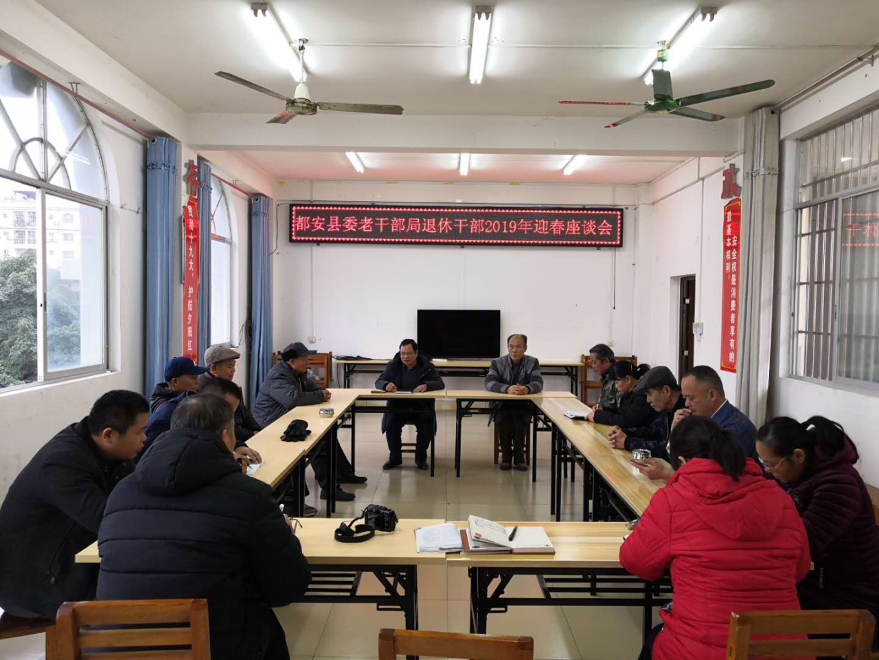 1月18日下午,都安县委老干部局召开退休干部2019年迎春座谈会,8位退休干部与全体在职干部一起谈新论旧、共话发展。