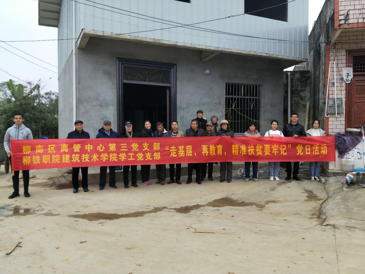 低温和冬雨再次侵袭着柳州,人们再次裹住厚重的冬衣,但即使是这样的天气,也挡不住柳南区离管中心党总支第三党支部和柳铁职院建筑技术学院学工党支部心系贫困群众的热情。12月26日,结对共建的两个党支部党员一行27人,冒着严寒,奔赴洛满镇顶建村开展 “走基层,再教育,精准扶贫要牢记”党日活动。
