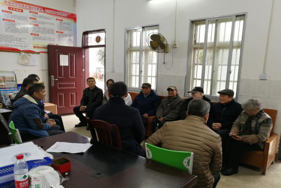 与村干部、扶贫队员共同座谈。