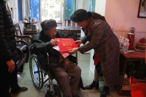 市纪委慰问组走访慰问离休干部黄杏芬。