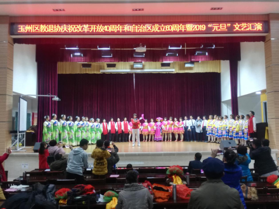 12月15日,玉林市玉州区离退休教师协会举行庆祝改革开放40周年和自治区成立60年暨2019年“元旦”文艺汇演,600多名退休教师参加活动。