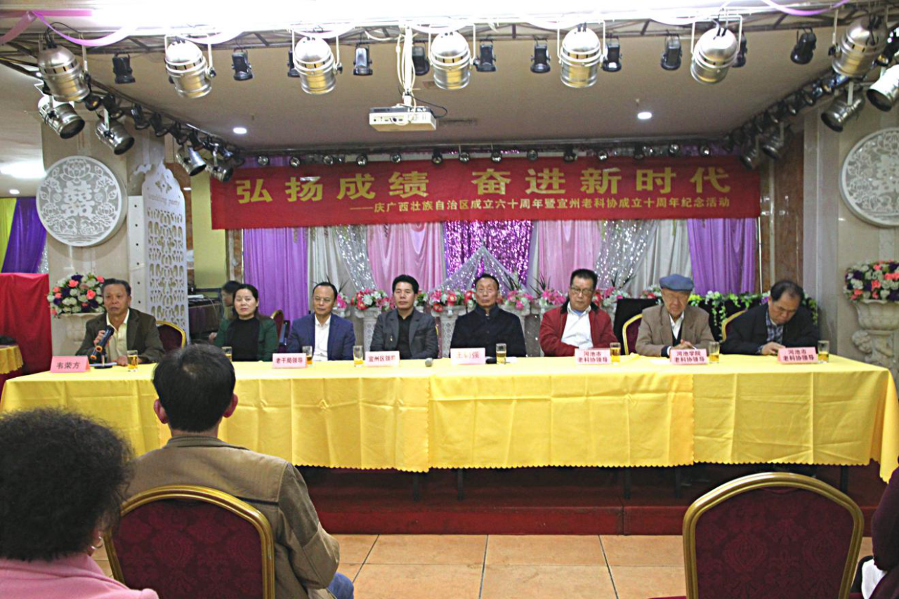11月30日下午,河池市宜州区老科协开展庆自治区成立60周年暨宜州区老科协成立10周年纪念活动。宜州区委常委、区委办主任韦景超出席活动,河池市老科协领导、宜州区发挥离退休专业技术人员作用联席会议各成员单位领导、离退休干部代表及宜州老科协会员近60人参加活动。