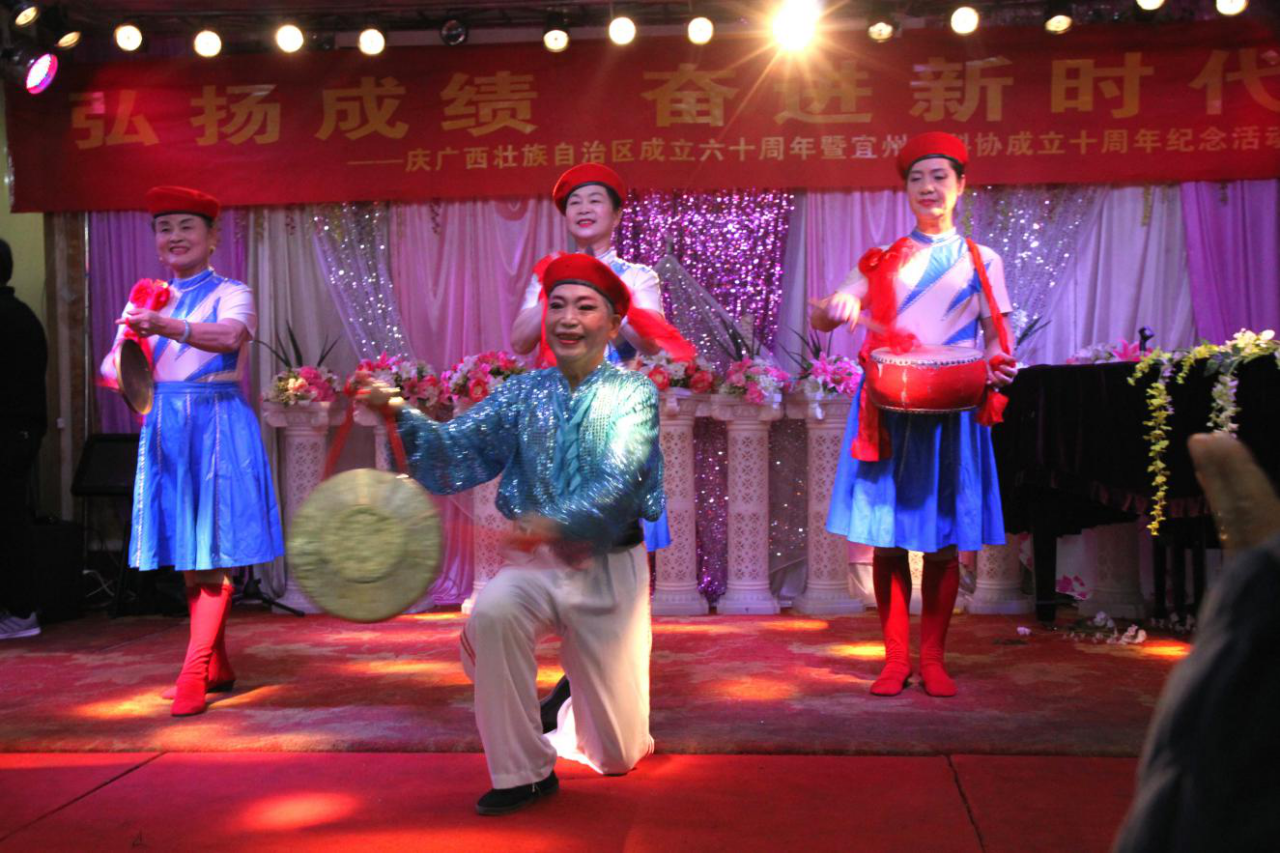 最后,宜州区老科协艺术团用诗朗诵、渔鼓、歌舞、三句半、彩调等多种节目形式为活动献上精彩的节目盛宴,共赞广西发展新成就。