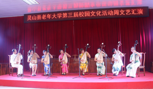 据了解,近年来灵山县老年大学发展迅速,规模不断扩大,教学质量不断提高。目前,学校开设有11个专业、28个教学班,学员达1000多人,曾荣获“全市离退休干部先进集体”“自治区示范老年大学”荣誉称号。县老年大学蔡副校长说,举办这次校园文化活动周,主要目的是让学员们能够加强沟通交流,共同学习,互动提高,让老年人真正体验老有所学、老有所乐、老有所为。