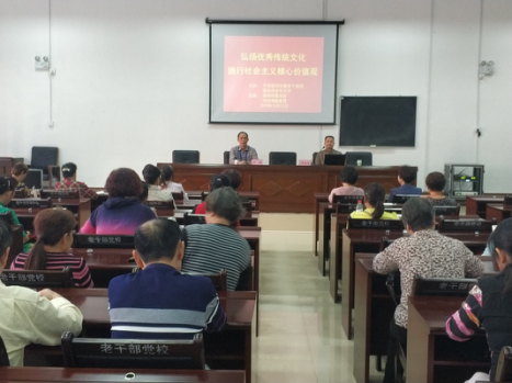 10月31日下午,由梧州市委老干部局主办的“弘扬中华传统文化,践行社会主义核心价值观”主题讲座在市老年大学正能量讲堂举行。讲座邀请市委党校副教授邓伟海主讲。老年大学学员、市委老干部局及市老年大学干部职工120多人到场聆听。
