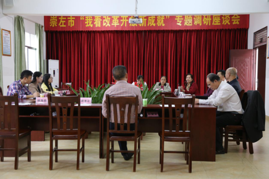 10月19日下午,自治区老干部局副巡视员韦梦青一行3人,到崇左市召开“我看改革开放新成就”调研座谈会。15位退休领导干部及工作人员参加座谈会,崇左市委组织部副部长、市委老干部局局长韦桂德主持会议。