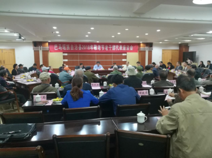 10月16日下午,巴马瑶族自治县召开敬老节老干部代表队座谈会,县四家班子主要领导、县委常委全体成员、老干部工作领导小组成员单位领导与31位离退休干部欢聚一堂,共话重阳,共庆佳节。