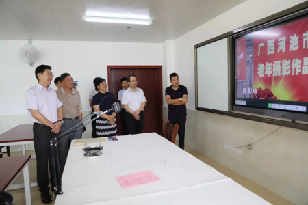 何辛幸先后来到老年大学健身房、乒乓球室、棋牌室、多媒体教室、书画摄影展示厅、大礼堂等,详细了解学校建设使用情况,并参观河池市第三届“寿乡红叶”离退休干部文化活动周书画摄影作品展,以及体育竞技、山歌汇演等主题活动。