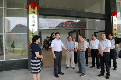 9月28日上午,河池市委书记、市人大常委会主任何辛幸到河池市老年大学检查指导,协调解决学校建设过程中遇到的困难和问题。