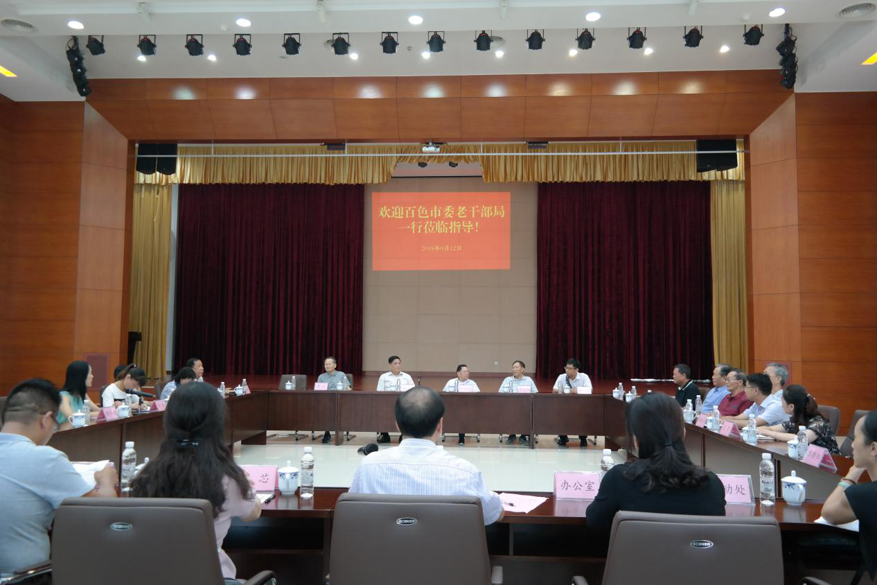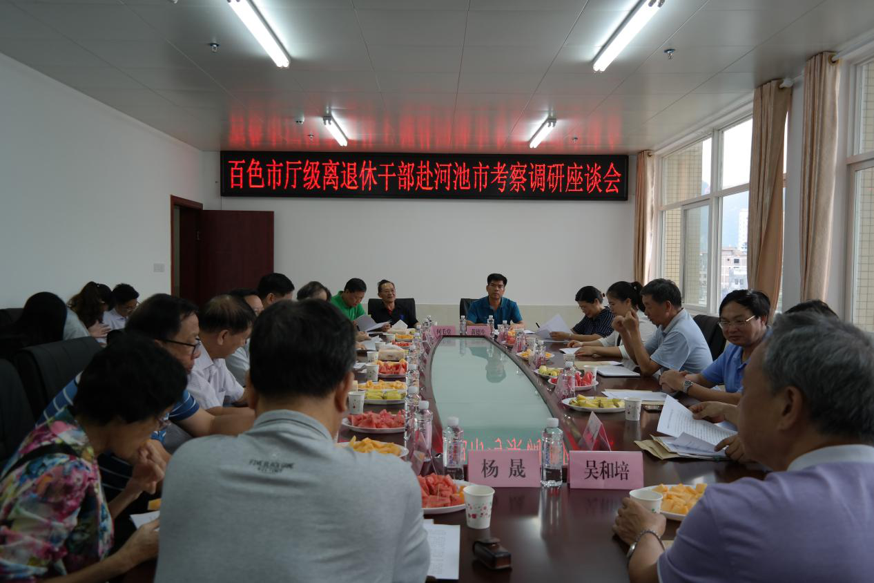 调研组与河池市老年大学领导班子成员座谈。