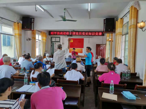 为隆重纪念中国共产党成立100周年,扎实推进党史学习教育,6月23日,贺州市昭平县隆重举行纪念中国共产党成立100周年党史知识竞赛活动。县委组织部副部长、老干部局局长黄国连参加了活动并对活动进行全程指导。县老干部党校常务副校长洪锦锋主持,县处级退休干部、涉老部门领导等老党员共35人参加。