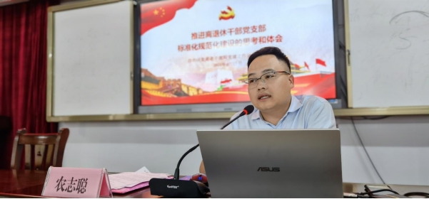 农志聪围绕推进离退休干部党支部标准化规范化建设的重要意义、探索实践、基本要求等,作题为《推进离退休干部党支部标准化规范化建设的思考和体会》讲课,通过解说、文字、图片和视频等形式,结合自身工作经验进行精心辅导,讲解细致,内容充实,深入浅出,为推进离退休干部党支部标准化规范化建设提供了新方法、新思路。