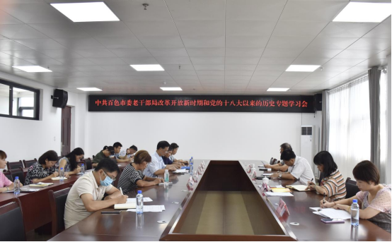 6月18日,百色市委老干部局召开会议,专题学习改革开放新时期及党的十八大以来的历史。百色市委组织部副部长、老干部局局长黄龙瑞出席会议并讲话。