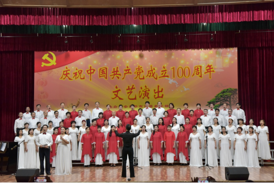 图为市委老干部局合唱队演唱的《没有共产党就没有新中国》