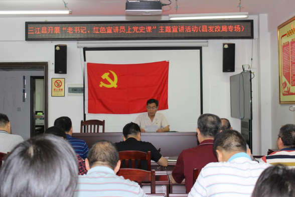 近日,柳州三江县委老干部局组织“老书记、红色宣讲员”分别走进该县发展和改革局、应急救援局开展党史学习教育主题宣讲活动,