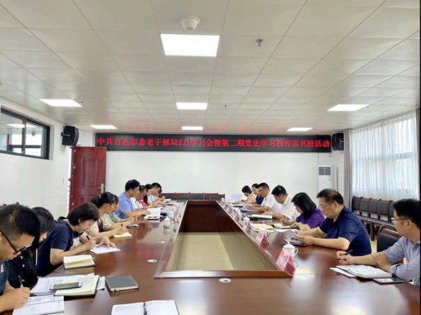 为抓好党员干部持续深入学党史,5月8日,百色市委老干部局党总支部组织局机关党支部全体党员干部、离退休党支部党员干部、入党积极分子开展5月学习会暨第二期党史学习教育读书班活动。市委组织部副部长、老干部局局长、离退休干部工委书记、局党总支部书记黄龙瑞主持活动并讲话。