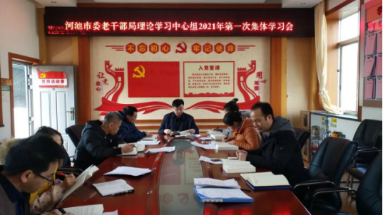 1月18日,河池市委老干部局理论学习中心组举行2021年第一次集中学习,围绕“认真学习贯彻习近平新时代中国特色社会主义思想,加强政治建设、提高政治能力、坚守为民情怀,夺取决胜全面建成小康社会、实现第一个百年奋斗目标、开启全面建设社会主义现代化国家新征程”主题进行交流研讨,为高质量开好市委老干部局2020年度领导班子和领导干部民主生活会筑牢思想基础。市委组织部副部长、老干部局局长、一级调研员罗平主持学习。局领导班子成员、调研员、局机关各科(室)、干休所、活动中心负责人参加学习。