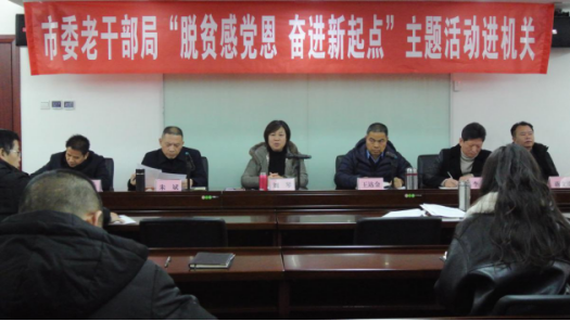 1月6日,桂林市委老干部局举行“脱贫感党恩 奋进新起点”主题进机关活动,市委组织部副部长、老干部局局长、市离退休干部工委书记刘琴参加会议并讲话,局机关全体干部职工、结对帮扶干部、驻村第一书记及工作队员参加会议并做交流发言。