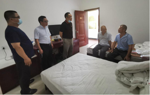 图为西湾矿区管理处领导在广西地质职工医院宿舍实地了解职业病人员疗养期间生活和康复治疗等情况。