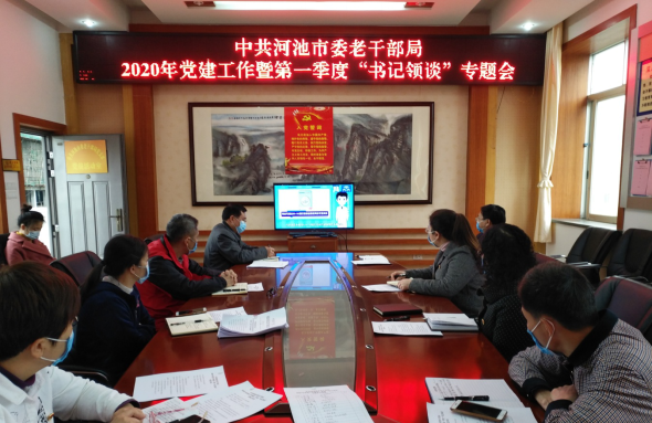 3月30日,河池市委老干部局召开2020年党建工作暨第一季度“书记领谈”专题会议,传达学习上级有关会议精神,安排部署2020年全局党建工作。市委组织部副部长、老干部局局长罗平主持会议,局机关、干休所和市老干部活动中心全体党员参加会议。