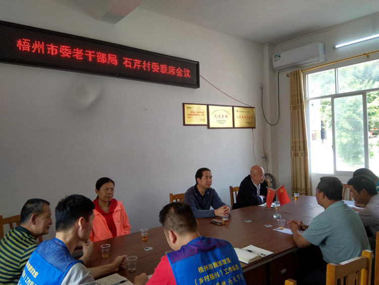 随后,梧州市委老干部局与石芹村委召开工作联席会议,听取驻村第一书记、扶贫工作队员和村支部书记关于脱贫攻坚工作的汇报,并围绕贯彻全市脱贫攻坚工作会议精神,巩固脱贫攻坚成果,大力发展村集体经济进行深入交流探讨。