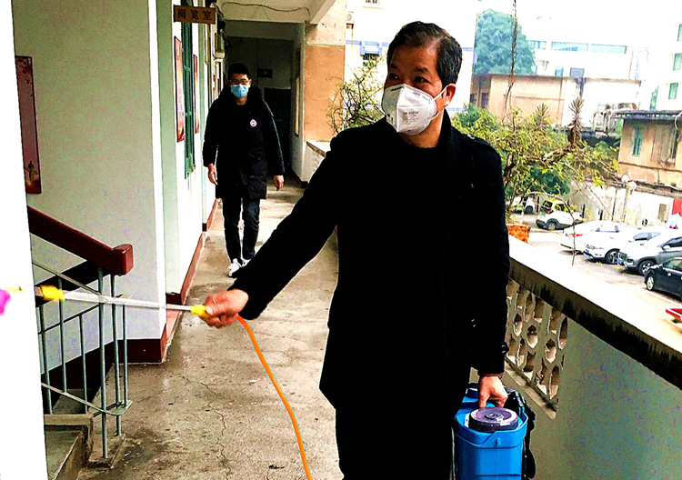 抓好自身防控。战“疫”刚打响,来宾市委老干部局及时成立疫情防控工作领导小组,印发防控工作方案,布置返岗复工前后的工作安排。第一时间将上级抗疫文件及防控工作最新信息发到单位微信群,组织全体干部职工开展网络集中学习,切实把疫情防控作为当前最重要的工作来抓。开展健康监测,全体干部职工每日在微信群汇报自身及家庭成员健康状况,遇特殊情况及时汇报;复工后进入办公楼需戴口罩、测体温,对来访人员做好登记造册工作。年后返岗前一天,全体党员干部对办公区域及涉老机构办公室进行一次集中消毒,之后每天下午下班后对公共区域集中消毒一次。公务用车在使用返回后,车辆管理部门用酒精擦拭消毒车辆内部及门把手。