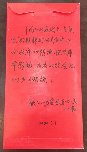 “希望疫情早日结束,祝福白衣战士早日凯旋。” 3月3日,南丹县委组织部收到一份2000元的特殊党费。交这份特殊党费的老党员叫杨昌惠,1954年11月入党,曾任南丹县劳动人事局局长、南丹县老干部局局长等职,这是一名65年党龄的老党员以自己力所能及的方式来支持疫情防控,彰显了共产党员的初心,传播了共同战“疫”的正能量。截至目前,全县各党组织共捐款317834.96元。
