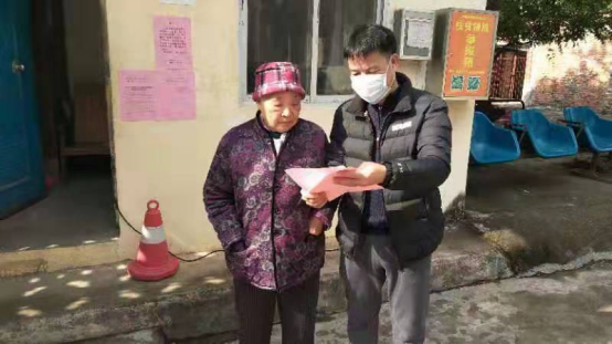 扶绥县老干局局长覃伟夫(右一)向群众宣传新型冠状病毒感染的肺炎疫情防控知识