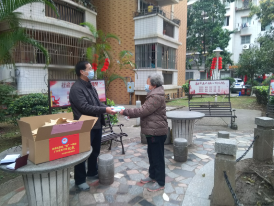 目前是防控新型冠状病毒肺炎疫情的关键时期,老同志更是新型冠状病毒重点易感人群。2月9日,在接到老干部反映口罩紧缺情况后,梧州市委老干部局迅速行动,主要领导亲自联系,得到市委组织部的大力支持,在当前一罩难求的情况下,用最短时间筹措到一批口罩。市委老干部局机关支部全体党员分成三个小组,在做好自我防护的同时,第一时间为100多名老干部送去急用的口罩和一封“家”信《听党指挥 众志成城 坚决打赢疫情防控阻击战》,在提醒老干部做好新型冠状病毒肺炎防范事项的同时,也让老干部及时感受到党和国家对他们的关心、爱护,更加坚定了战胜新型冠状病毒肺炎疫情的信心,纷纷表达对组织长期以来的关心关爱和老干部局对待老干部“不是亲人胜似亲人”的感激之情。