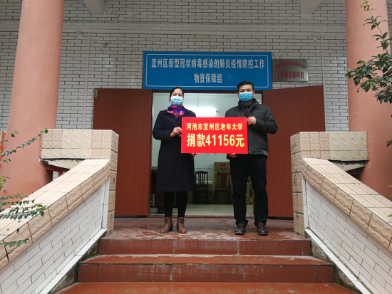 近日,宜州区老年大学党支部积极响应宜州区党委、政府倡导社会各界献爱心,依法依规积极参与捐赠疫情防控物资和资金的号召,充分发挥党员的先锋模范作用和党支部的战斗堡垒作用,发动全体党员和全体学员为抗击疫情捐款,得到了全体师生的积极响应。