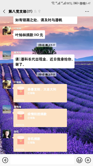 图为微信群捐款截图