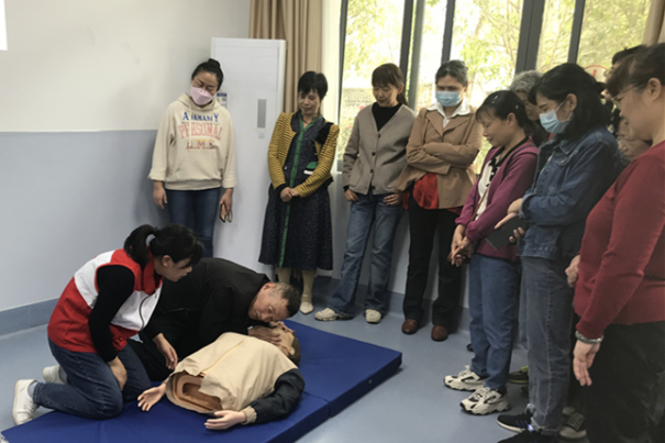 老干部参与心肺复苏实操演练